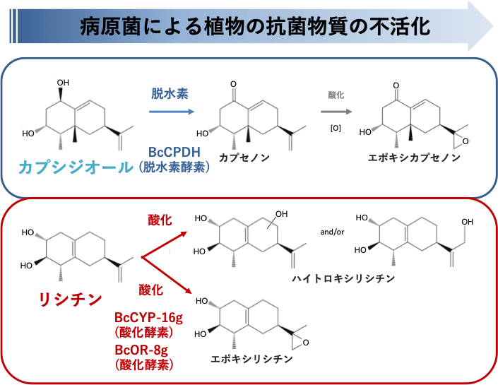 灰色かび病菌は、ピーマンの抗菌物質カプシジオールとトマトの抗菌物質リシチンを異なる酵素により不活化する