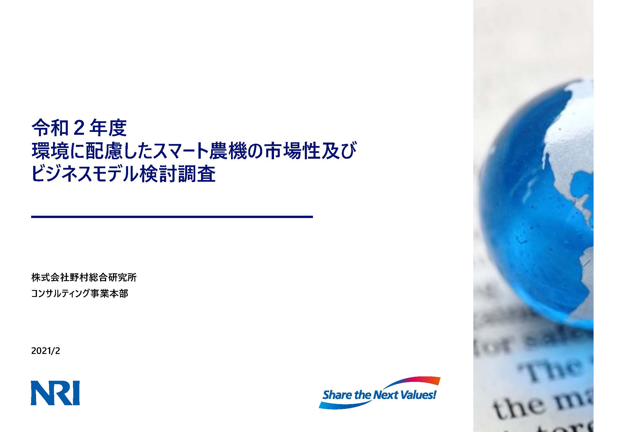 環境に配慮したスマート農機の市場性及びビジネスモデル検討調査委託事業
